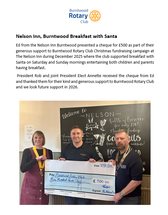 Nelson Inn Burntwood Christmas donation
